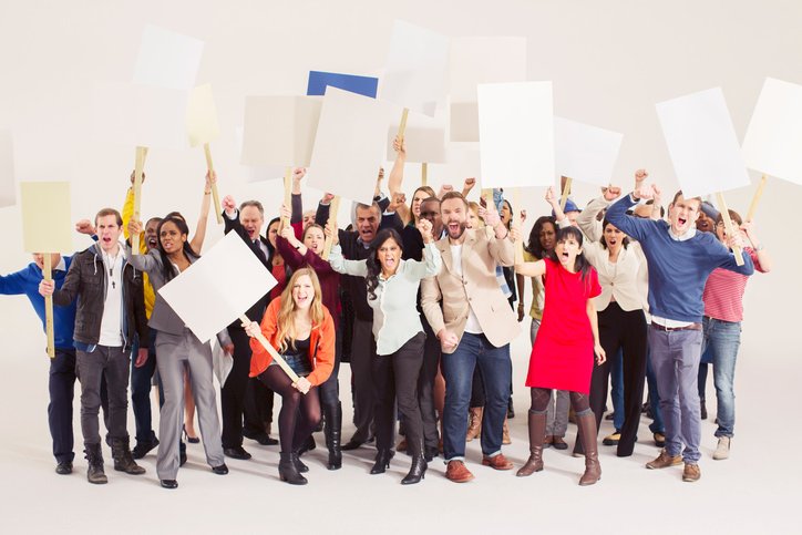 Clicking on the “Protestor” tag below the photograph plunges us into that sister database, and reveals that such requirements have already been anticipated. Witness the extraordinary Protestors with Picket Signs, in which a frieze-like assortment of ethnically diverse, well-dressed “activists” hold up blank placards primed to brandish a message of the licensee’s choice (fig. 8). The representational infrastructure of mimed outrage stands at the ready, these evangelists of blankness greeting their unseen antagonist. The metadata tags reveal, among the merely descriptive “Demonstration”, “Low Angle View”, and “Mixed Race Person”, the key element of the photograph: “Copy Space”. The photograph, and its markers in the database, anticipate perfectly the search strings of besieged editors, avaricious marketers, and demagogues alike.