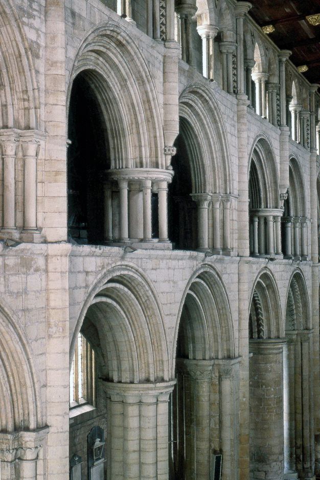 As Jean Bony pointed out, the south transept was initially built without a vault; the first English ribbed vault over a clerestory with passages thus came in the north transept. See Bony, “Le projet premier de Durham, voûtement partiel ou voûtement total?”, in Urbanisme et architecture: études écrites et publiées en l’honneur de Pierre Lavedan (Paris: Henri Laurens, 1954), 41–49. The “hollow wall” structure was analyzed by Jean Bony in “La technique normande du mur épais, à l'époque romane”, Bulletin Monumental 98 (1939): 153–88. The English term “thick wall” tends to imply solidity; “thick hollow wall”, or even “hollow wall”, seem more appropriate terms. For recent analyses of this vault, see Malcolm Thurlby, “The High Vaults of Durham Cathedral”, in Engineering a Cathedral, ed. Michael J. Jackson (London: Thomas Telford, 1993), 64–76 and Thurlby, “The Building of the Cathedral: The Romanesque and Early Gothic Fabric”, in Durham Cathedral: An Architectural Appreciation, ed. Douglas Pocock (Durham: City of Durham Trust, 2014), 21–53. ↩︎