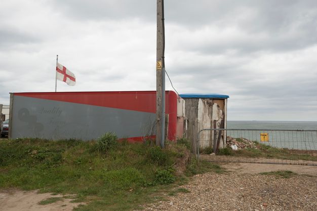 35On the edge by the car park stood a shack, or at least a sort of holiday chalet, in which people were living—apparently holding on until the ground literally disappeared beneath their feet. They were flying a cross of St George. This could have been for a number of reasons—football, patriotism, nationalism—but it occurred to me that the claiming of this land as England seemed so pointless. Presumably it would not be long before this would cease to be England, or in fact anywhere.35