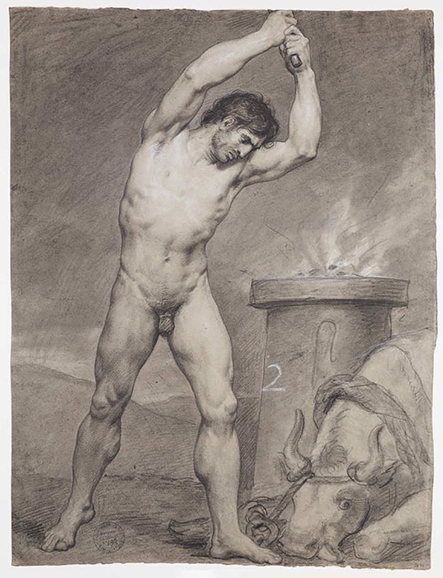 Before Gericault’s untimely death, he too probably worked with Gerdy and, through him, may have had access to the corpses and body parts he studied in his studio while working on the Raft of the Medusa. Gerdy had links too with Gros, whose students at the École des Beaux-Arts also studied with Gerdy: under Gros, Maximilien-Félix Demesse (1806–18??) competed unsuccessfully four times for the Prix de Rome, in 1827–1830.80 Demesse provided the surface anatomy drawings for Gerdy’s lithographic illustrations to his Anatomie des peintres: he even redeployed this same frontal figure for the protagonist Méléagre in his concour esquisse for the Rome Prize in 1830 (fig. 18). His master Gros’ own early life studies, dynamic and muscular (fig. 19), make a telling comparison too with the models of Maclise (see fig. 16). While the overall muscular athleticism is comparable, Maclise gives his figures an extraordinary, extrovert vitality, openly disporting themselves as if to a complicit viewer. Notable, too, is Gros’ academic treatment of the genitals, reduced to a shrunken, abstracted pouch; the contrast reveals just how daringly explicit were those of Maclise, even given the rationale of their medical context. While working in Paris, Joseph Maclise could well have attended Gros’ studio to pursue his life drawing, or equally the open Académie Suisse life studio frequented by all the great artists of the period, which was located on Île de la Cité, just across the Pont Saint-Michel on the Quai des Orfèvres (see fig. 3).81 Demesse’s life drawings for Gerdy were printed by lithographer Pierre Langlumé (1790–18??), who exhibited at the Paris Salon in 1822 and 1824, and whose printing workshop was conveniently located at 6 rue de l’Abbaye, between the École des Beaux-Arts and the École de Médecine.82 Through Gerdy, Joseph Maclise likely met Demesse and Gros, and, while in Paris, Maclise himself may have practised lithography, perhaps at Langlumé’s (then owned by Bénard), or with Jean Engelmann—son of Godefroy, an associate of Maclise’s London printers Graf and the Hanharts—perhaps alongside the renowned Nicolas-Henri Jacob (1782–1871), who lived next door to Langlumé/Bénard, at 4 rue de l’Abbaye.83 Trained under Jacques-Louis David and professor of drawing at the École nationale vétérinaire d’Alfort (1818–1830), Jacob was artist-lithographer to the renowned anatomist Jean-Baptiste-Marc Bourgery (1797–1849), whose magisterial Traité complet de l’anatomie de l’homme (1831–1854), which Joseph would have known, ran to fourteen volumes, including eight of plates, with over 700 illustrations.84 Early on, Jacob had demonstrated the new medium in practice in his 1819 lithograph, The Genius of Lithography: his 1831 frontispiece for Bourgery flaunted his Davidian credentials and penchant for male muscle (fig. 20).85