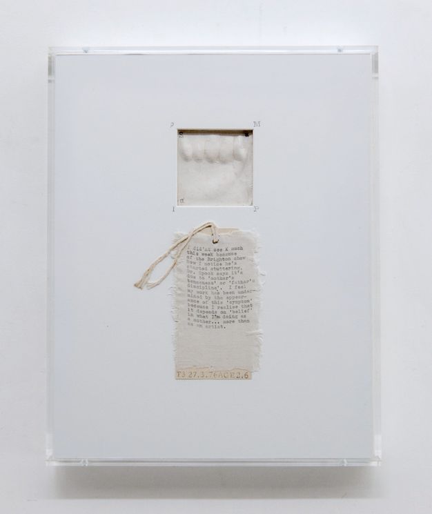 42Expanding on the work of these and other scholars, I propose a kind of lateral view across art history—one that seeks connections across modalities and movements without necessarily making a claim that such interrelationships are derivative or directly consequential to one another. Bhimji’s photo-text work can be understood, for example, through the lens of a wider range of local artistic models than the cohort with whom she most often exhibited. Specifically, her emphasis on affect, memory and the symbolic use of childhood or domestic objects, and her blending of the “critical” and the “intimate”, may have its roots in another constellation of artists working in and out of London at this time, mainly Bhimji’s tutor, the conceptual artist Mary Kelly (but also Susan Hiller, Helen Chadwick, and others).